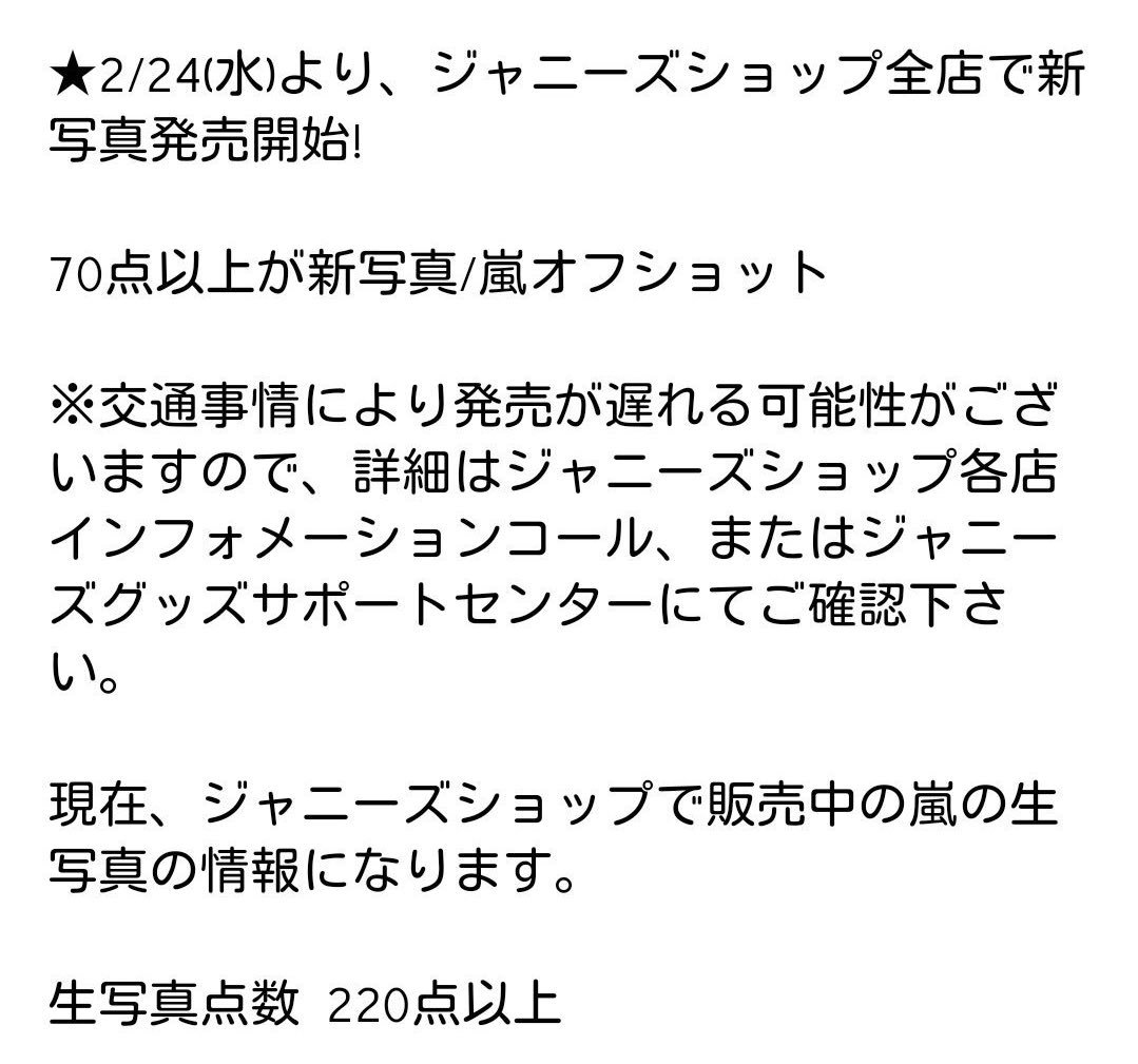 ↓でジャニーズショップでの解禁メールきてたようですw嵐の新写真も登場との事・・・・・ いそがしいのにいつの間に撮ってるんでしょうねw